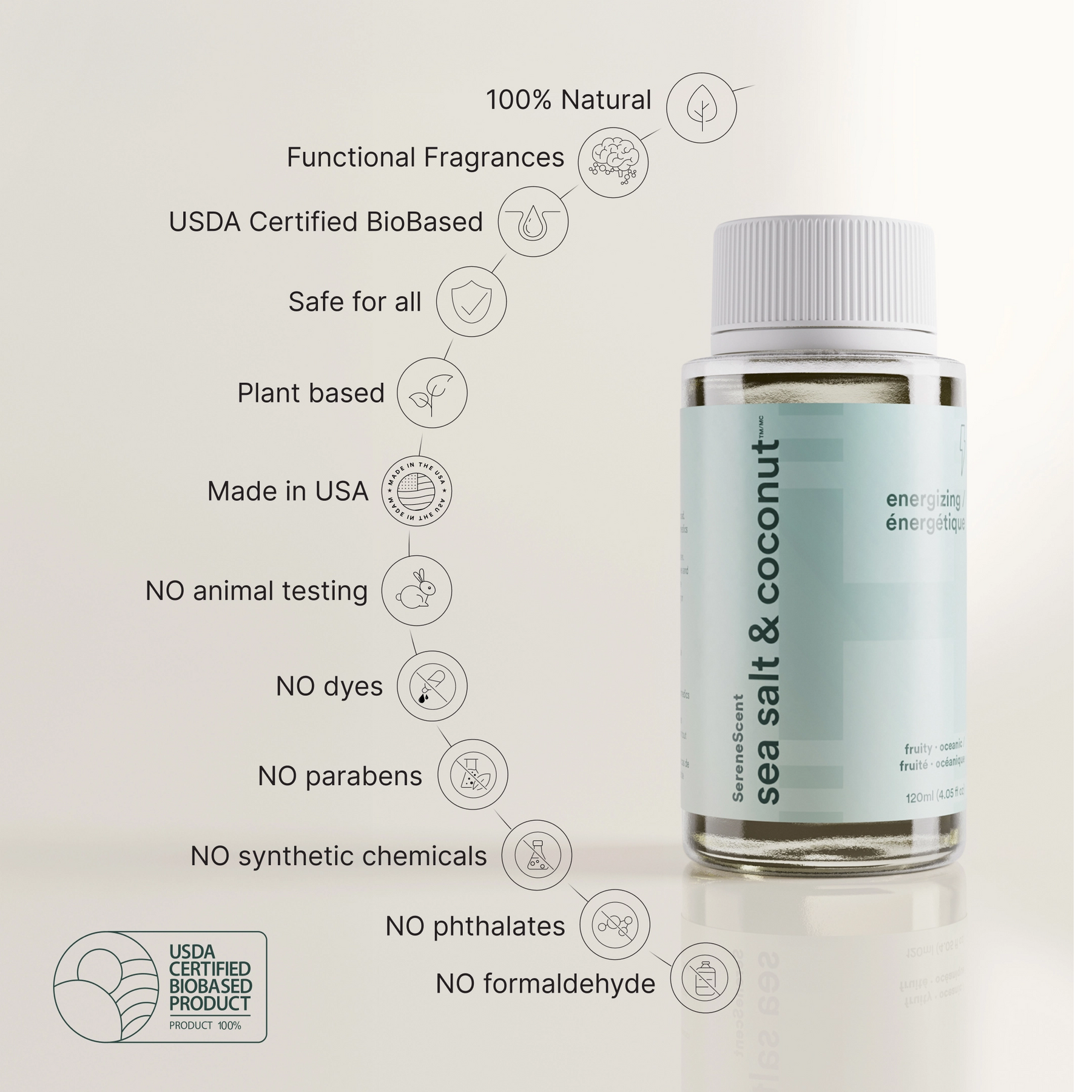 Our fragrances are crafted with natural fragrance design technology and essential oils, backed by over 25 years of research and supported by fMRI brain studies. Specific scent molecules have been shown to trigger positive emotions like energy, calm, and happiness.
